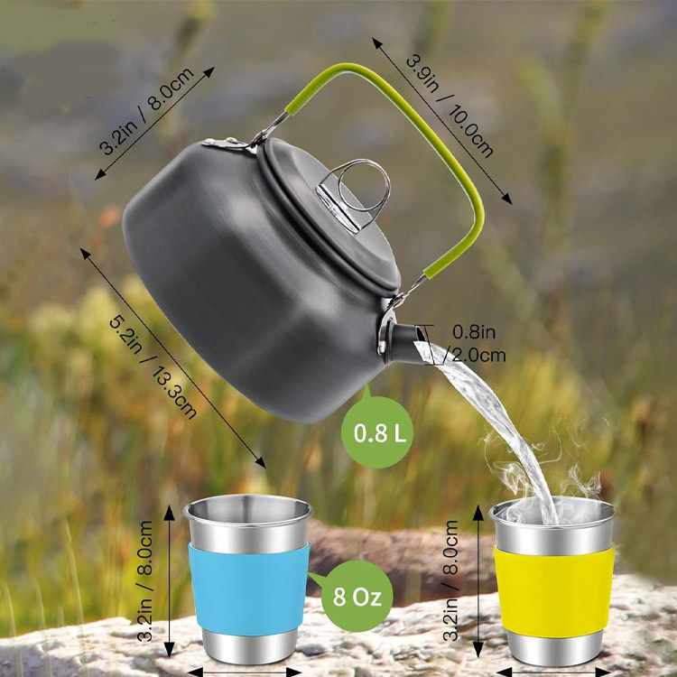 Әр түрлі жылу көздеріне, соның ішінде лагерь пештері, ашық от және портативті грильдер үшін қолайлы. Кәстрөлдер мен табалар бәрін қайнаған судан жеңілдетеді.