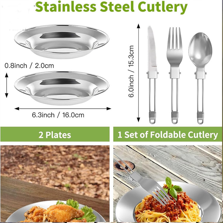 Бұл жан-жақты жинақтың құрамына сыртқы тамақтану қажет: кәстрөлдер, кәстрөлдер, кастрюльдер, табақтар, шанышқылар, шанышқылар, пышақтар және қасықтар - лагерь оқиғалары үшін ас үйдің толық шешімін ұсыну.