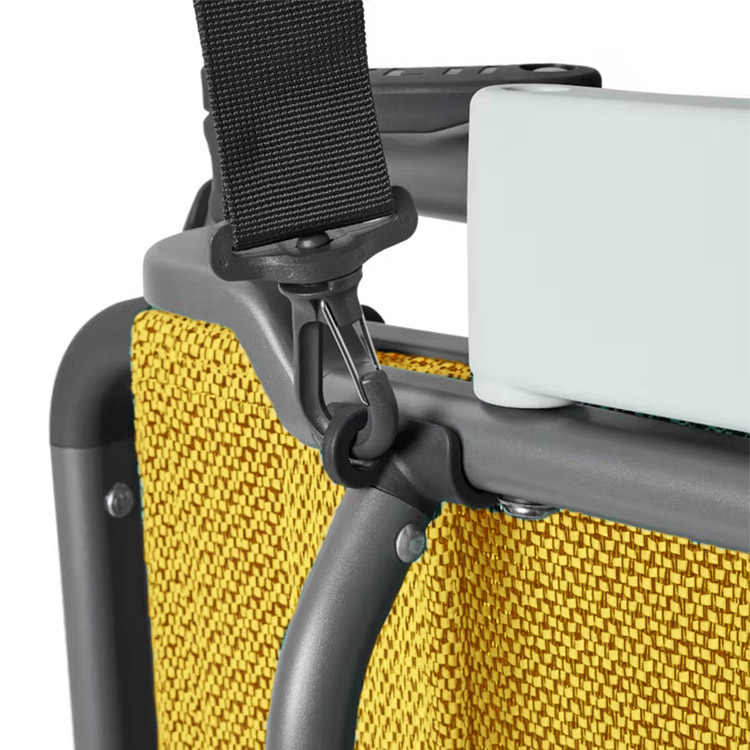 Жеңіл тасымалдауға арналған берік, жеңіл, жеңіл сөмкесі бар. Бүктелген кезде, орындық автомобильдер мен сақтау бөлімдерінде жақсы үйлесетін жұқа профильді сақтайды.