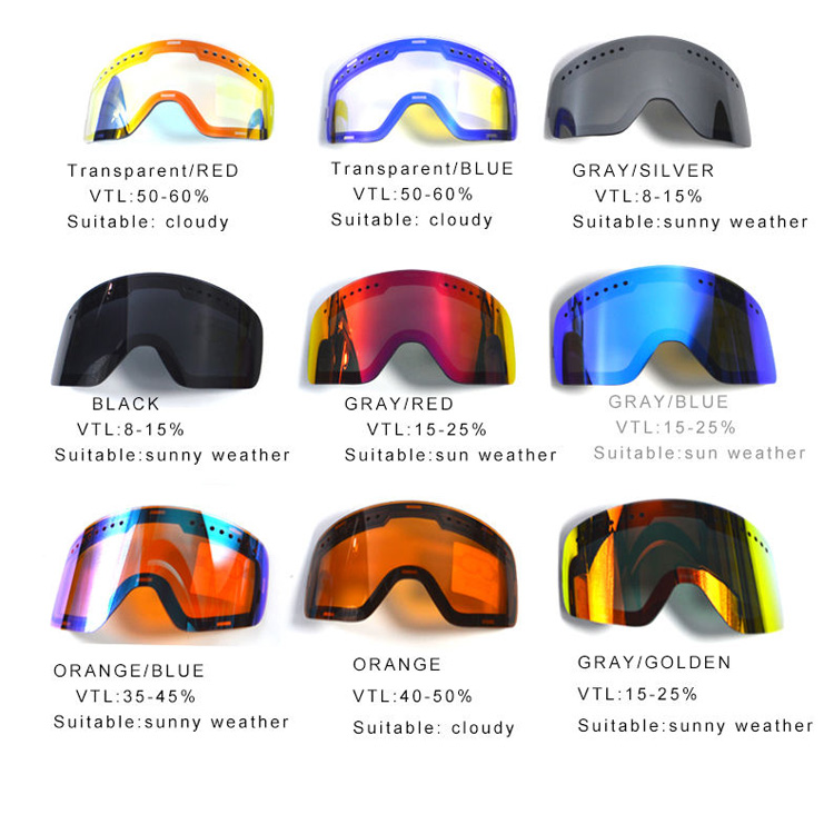 Тұманға қарсы арнайы магниттік ультракүлгін ультракүлгін ультракүлгін ультракүлгін ультракүлгін сәуле goggles. Бұл шаңғы алқаптары, таңғажайып магниттік ультрафиолетпен қорғайтын линзалар. Екі қабатты дизайнның стильді дизайны барлық қар шаңғымен сырғанау үшін жайлылық пен жайлылықты қамтамасыз етеді.