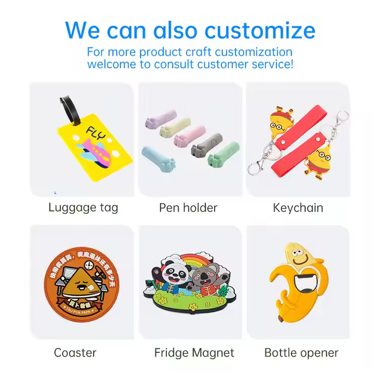 Толық теңшелген 2D немесе 3D дизайнымен бренд немесе идеяңызды өмірге әкеліңіз. Бұл логотип, тұмар немесе ұран ба, біздің жұмсақ PVC кілтсөздері сіздің көру қабілетіңізге бейімделеді, бұл сіздің көзқарасыңызды жанды түспен және жоғары бөлшектермен сәйкестендіреді.