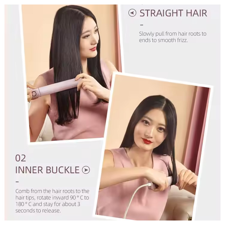 Жеңіл, жеңіл денесі бар, ыңғайлы ұстау және 360 ° бұрылғыш сыммен, оңай өңдеуге арналған. Автоматты түрде өшіру және қос кернеу үйлесімділігі, оны үйде, салон немесе халықаралық саяхаттар үшін қауіпсіз етеді.