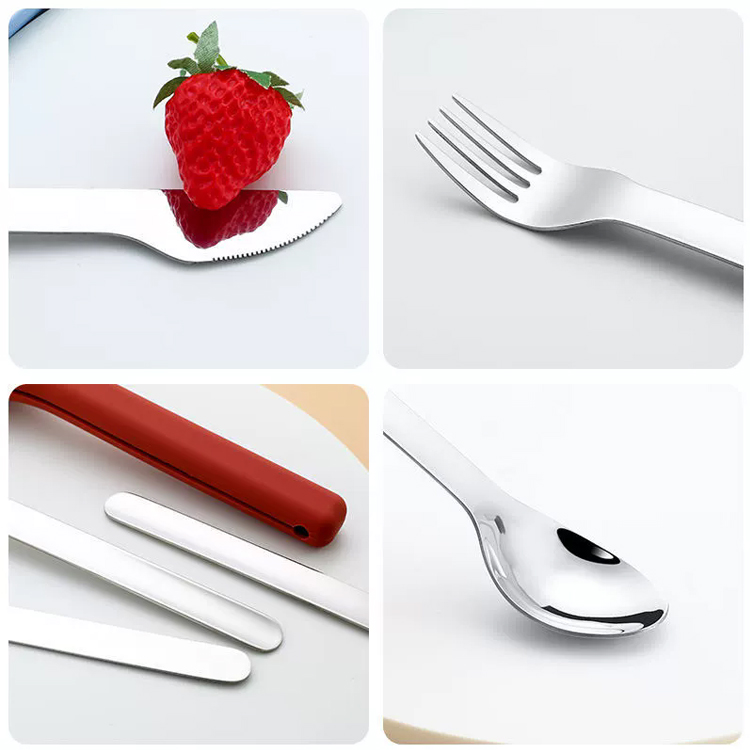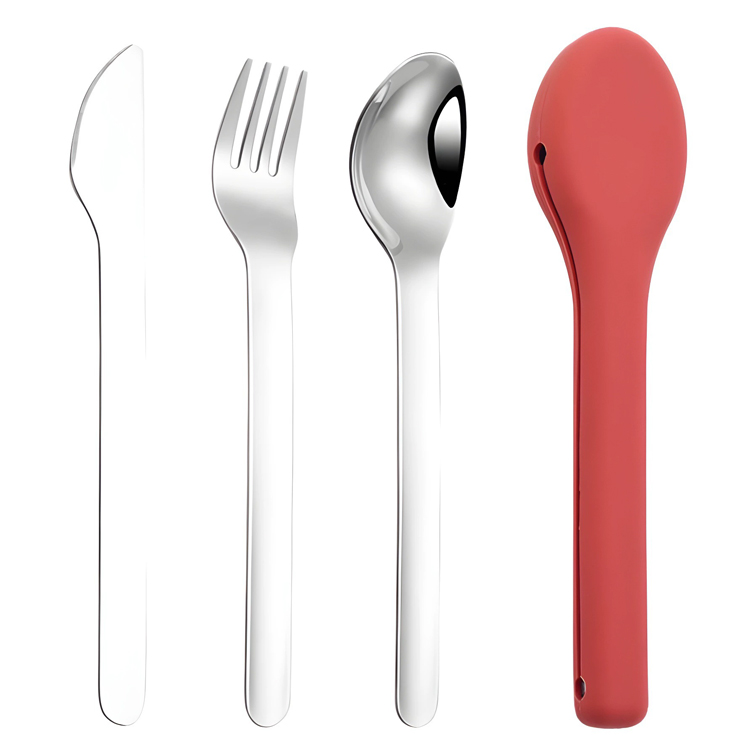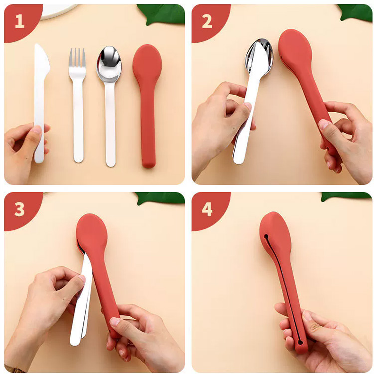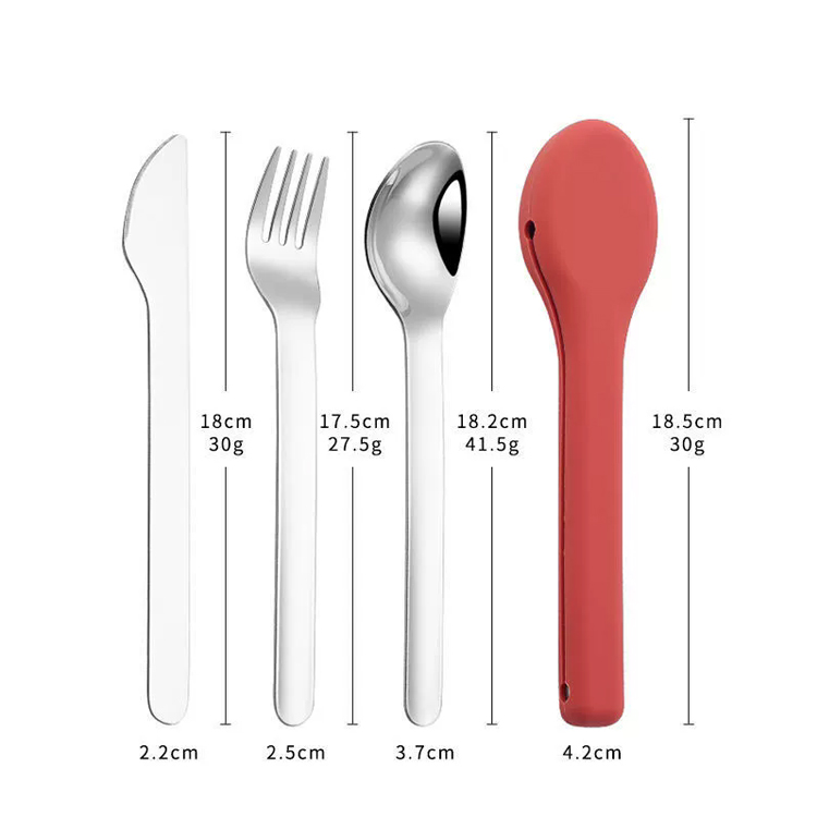 Жоғары сапалы кемпингтік саяхат ас құралдары жиынтығы Sillicone силиконы. Бұл жоғары сапалы ас құралдары жиынтығы қорғаныс силикон корпусындағы тот баспайтын болаттан жасалған жалпақ бұйымдармен ерекшеленеді. Кемпинг, саяхат және пикниктер үшін мінсіз, ол кез-келген жерде талғампаз және гигиеналық ас ішуге мүмкіндік береді.