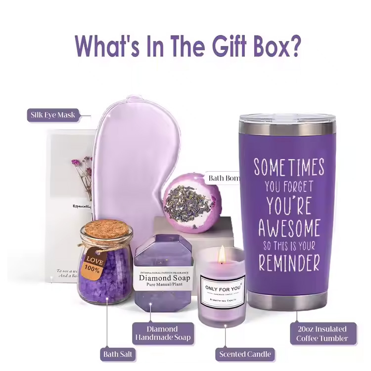 Әрбір люнир сыйлық қорабына тот баспайтын болаттан жасалған бұйымдар, ароматерапия шамы, алмаз тәрізді сабын, кептірілген сабын, кептірілген гүлдер және сәлемдесу карталары кіреді. Бұл дайын сыйлық жиынтығы сізге кез-келген жағдайда толық, шын жүректен тәжірибе алмасу кезінде уақытты үнемдейді.