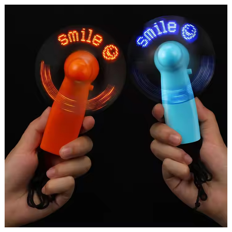 Жаңа мини-портативті ыңғайлы қолмен жарық диодты LED Жеке хабарлама FAN.Mini Portable LED хабарламаның желдеткіші— Айналдыру мәтінімен ықшам, батареямен жабдықталған және реттелетін етіп. Брендті немесе хабарды жарық диодты шамдармен көрсеткенде салқындын жеткізеді. Оқиғалар, кештер немесе жарнамалық сыйлықтар үшін өте ыңғайлы.