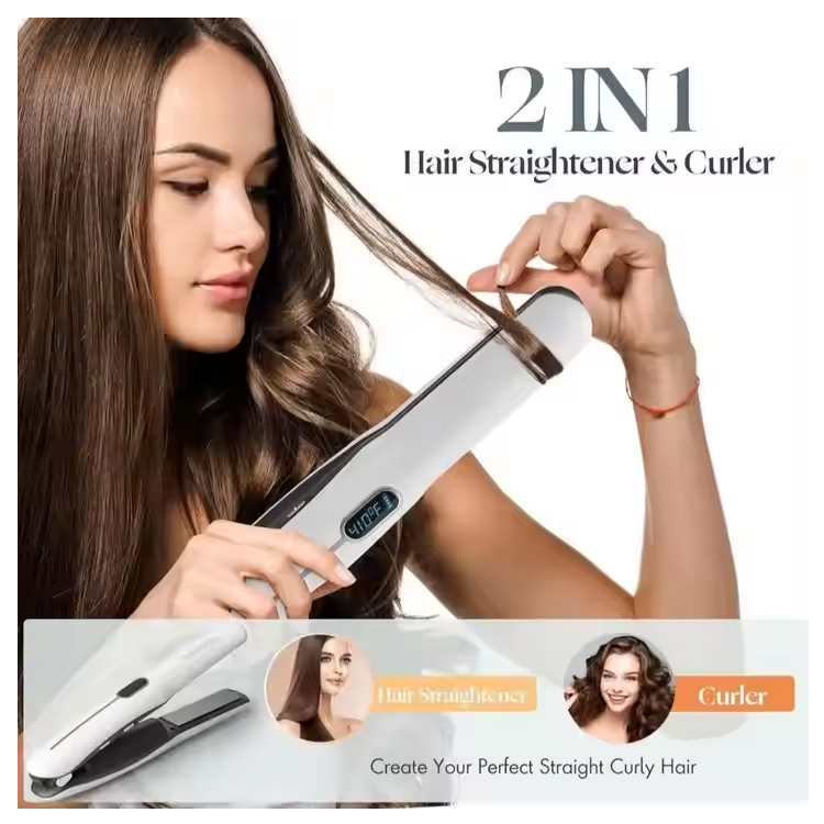 Портативті 2-ден 1-ден 1-ден 1-ге дейінгі сымсыз шаш түзеткіш және бұйралайтын үтік. USB-қайта зарядталатын және қолдануға оңай, бұл студенттер мен отбасыларға сыртқы және ішкі жарықтарды, ықшам, қауіпсіз, қауіпсіз және саяхаттауға дайын.
