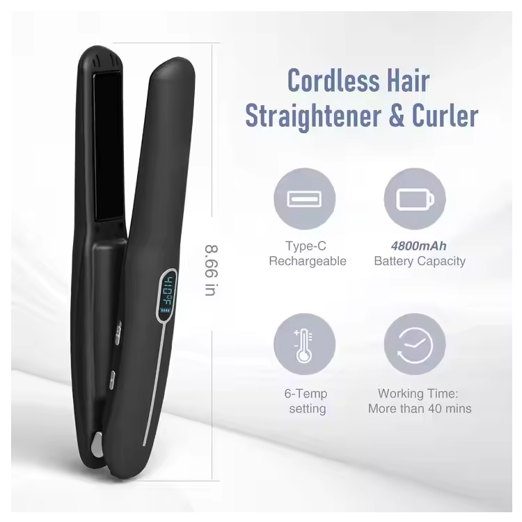 Портативті 2-ден 1-ден 1-ден 1-ге дейінгі сымсыз шаш түзеткіш және бұйралайтын үтік. USB-қайта зарядталатын және оңай қолдануға болады, ол’Студенттер мен отбасыларға сыртқы және ішкі соққылар үшін өте жақсы—Ықшам, қауіпсіз және саяхаттау.