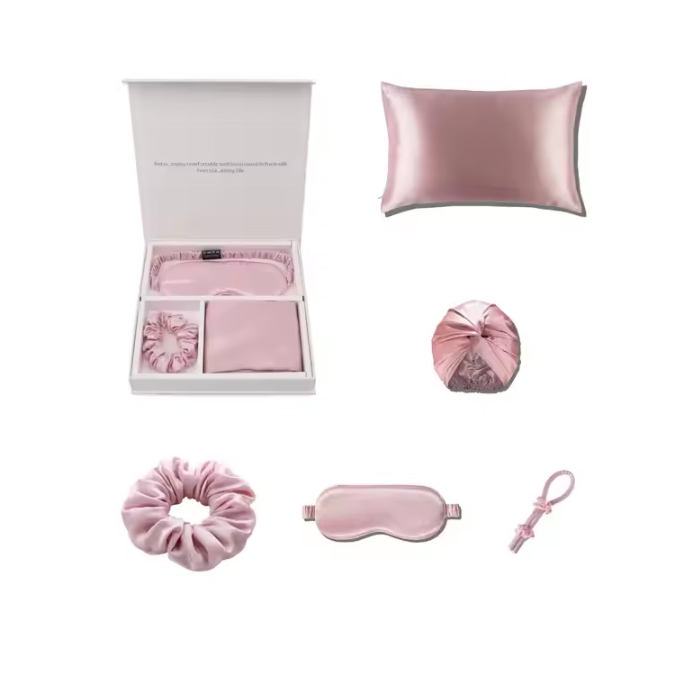 Жібек жастықшаларын, толтырылған ұйқы маскасын және сәйкес келетін шаштың сәйкестігі бар - барлық түнгі күнделікті көтеру үшін жасалған. Бұл бір пакет релаксация, сұлулық күтімі және стиль бір талғампаз қорапта.