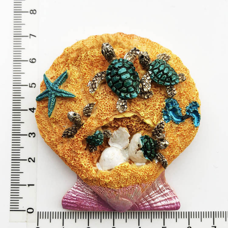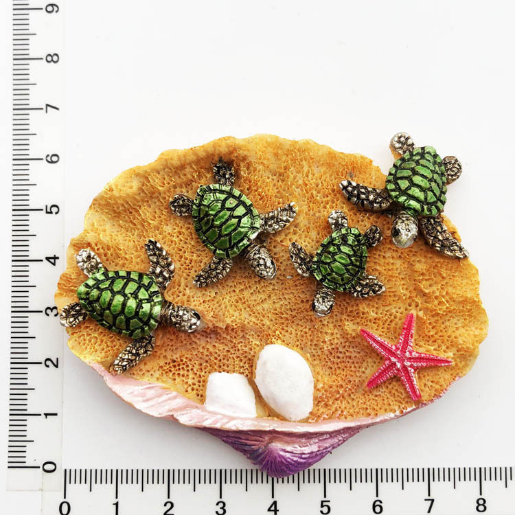 Үш, егжей-тегжейлі тасбақалармен безендірілген сүйкімді жұлдыздар пішіні бар, бұл тоңазытқыш магниті мұхиттың әсемдігімен, миниатюралық өнер туындысына түседі. Әр элемент сіздің үйіңізге нақты және сәндік түрту үшін мұқият мүдделі.
