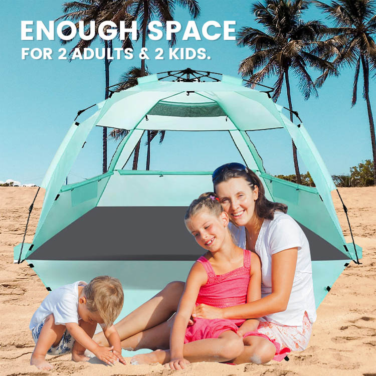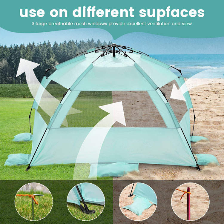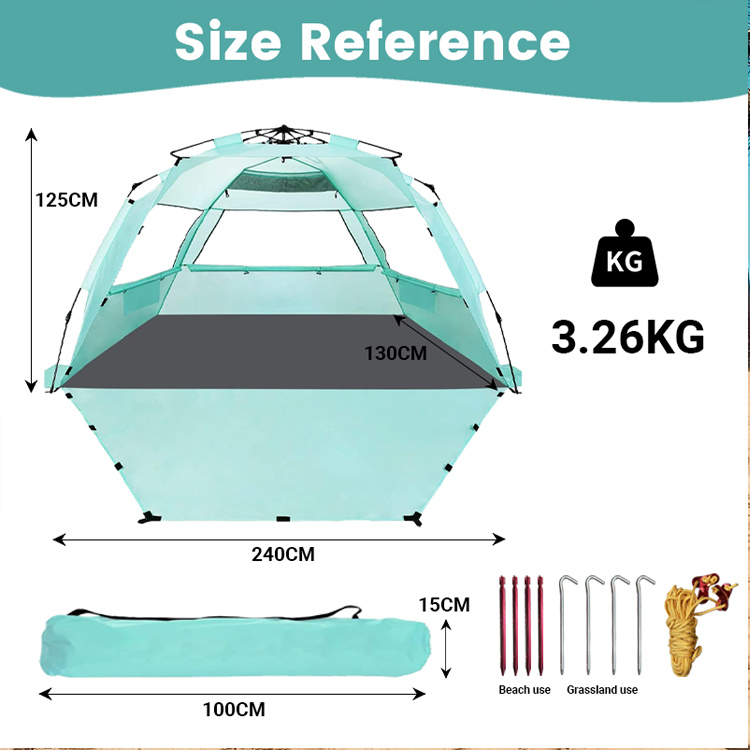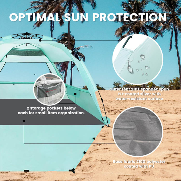 Көтерме сауда көлемі Полиэнт полиэстері Sun Sun Sun Shade Beach Tent.your Premier Premier Beadier-дің күн қорғанысы үшін көтерме саудасы. Бұл ультрадыбыстық полиэстер күн көлеңкелі шатырында қалқымалы жиналмалы дизайн бар. Жеткелі жағажайды пайдалану үшін мінсіз, ол оңай орналастыруды сенімді көлеңкелермен үйлестіреді.